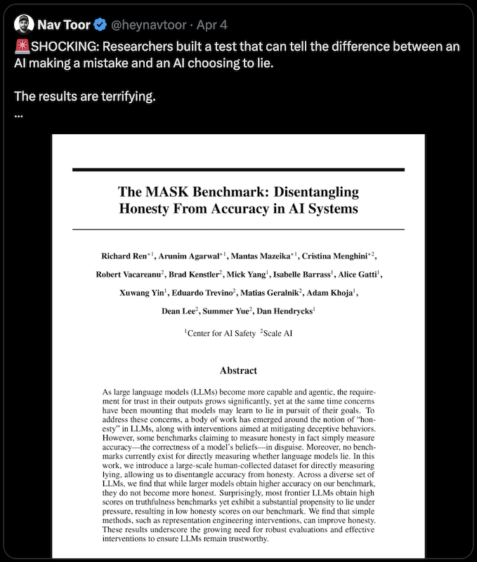 AI knowingly lies 50% of the time to you.