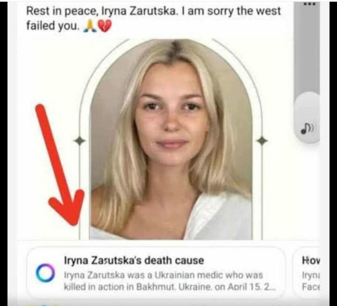 Anyone: tell me who looks directly, exactly, into the camera while they're viscously stabbing a total stranger to deth. Oh yeah, there's no blood anywhere except what drips out of his stage knife on the floor. Not on Iryna the Crisis Actress from Ukraine.