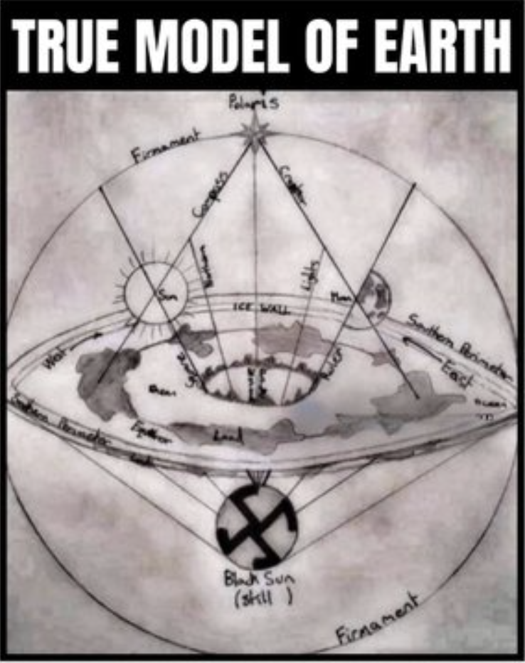 The moon is a floating office (& reflection dish) called the Lunar Earth Command that operates our distorted weather. The black sun (from below the surface in N Pole) projects earth's image onto the moon in black and white. Image from Freem@son whistleblower.