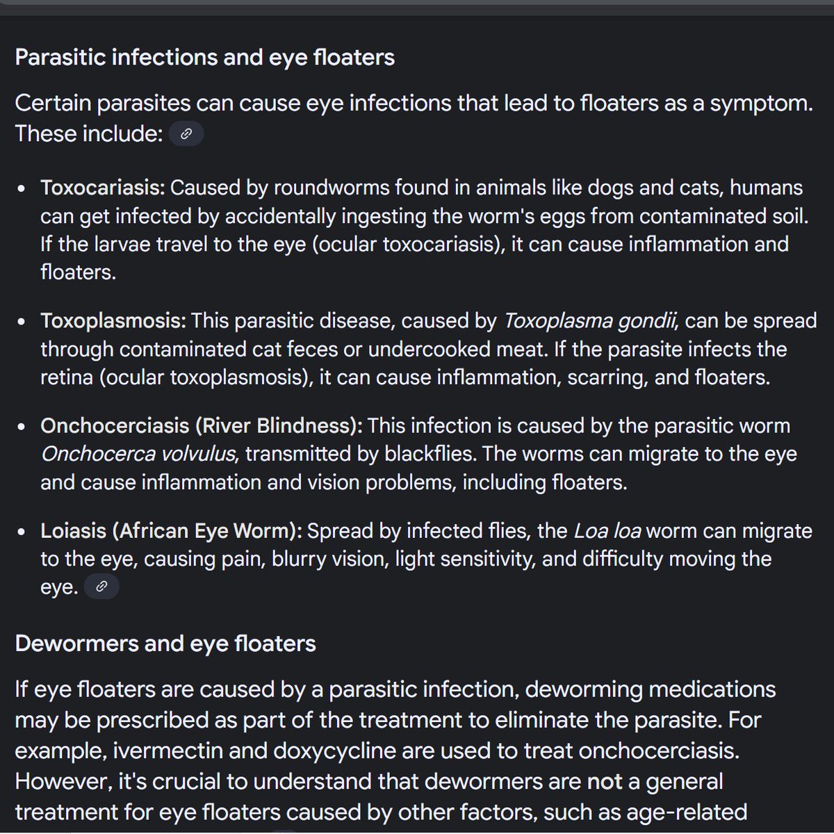 Below are my preferred natural dewormers list I take. I never stop other than 1 day ea week to prevent resistance, since we continue to get new parasites every day. In all our foods, water and even in the air from chemtrails, called Serratia Marcescens. I have the lab report.